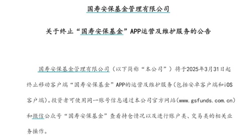 【导读】国寿安保基金将终止旗下App的运营及维护