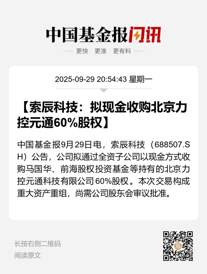 索辰科技9月29日晚公告,公司拟通过全资子公司上海索辰数字科技有限公司(以下简称数字科技)收购马国华、田晓亮及前海股权投资基金(有限合伙)等10名股东持有的北京力控元通科技有限公司(以下简称力控科技)60%股权。交易完成后,力控科技将成为公司间接控股的二级控股子公司。