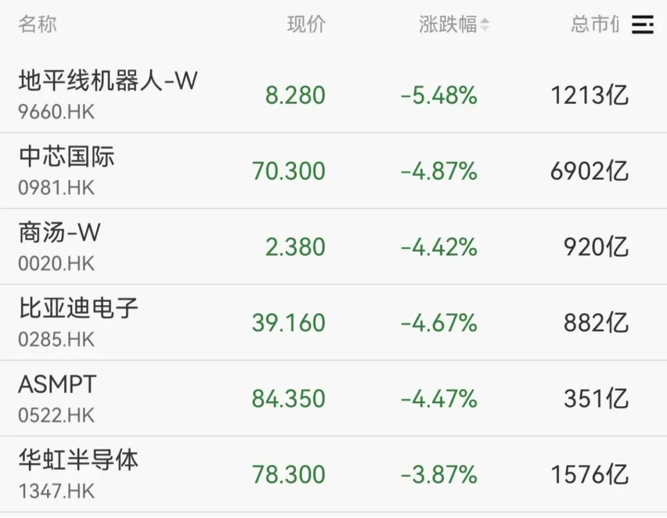 港股方面,恒生科技指数跌超2%,中芯国际、商汤、比亚迪电子等均跌超4%。