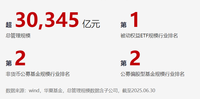 华夏基金是1998年成立的国内首批公募基金公司,是“老十家”基金公司之一。截至2025年二季度末,华夏基金管理资产规模超3万亿元,是境内最大的基金管理公司之一。