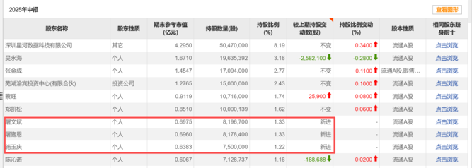 群兴玩具相对积极的表态无疑给投资者吃下了一颗“定心丸”。到2025年一季报披露时,公司股东户数较上年末有了明显增长。2025年半年报显示,前十大股东中,出现了屠文斌、施玉庆等牛散的身影。