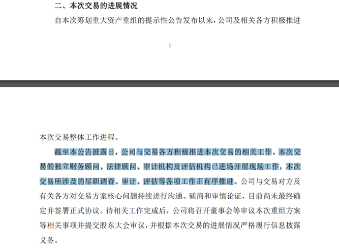 此后,群兴玩具分别在今年3月、4月、5月、6月、7月、8月、9月发布进展公告,表示公司及相关各方积极推进本次交易整体工作进程。如在9月23日的公告中,群兴玩具称,截至本公告披露日,公司与交易各方积极推进本次交易的相关工作。本次交易的独立财务顾问、法律顾问、审计机构及评估机构已进场开展现场工作,本次交易所涉及的尽职调查、审计、评估等各项工作正有序推进。