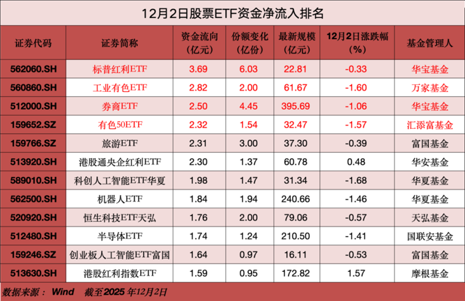 【导读】12月2日红利ETF净流入超20亿元