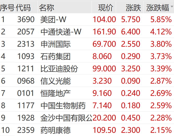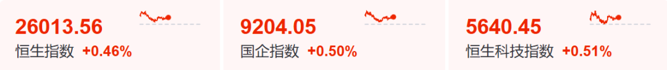 港股市场盘初走高,盘中回吐部分涨幅。截至午间收盘,港股三大指数持续飘红;美团大涨5.85%,领涨恒指成份股。