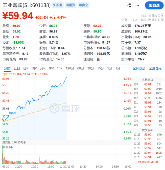 11月26日上午,A股通信、电子板块集体走高,光模块、光通信、光芯片、消费电子代工等概念股火热。