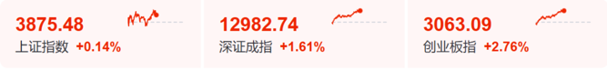 11月26日上午,A股市场震荡走强。截至午间收盘,上证指数涨0.14%,深证成指涨1.61%,创业板指大涨2.76%。