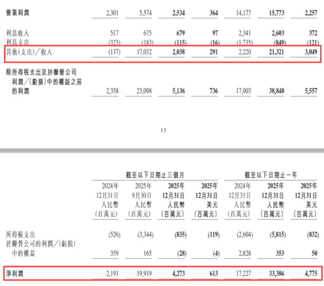 对于净利润大增的原因,携程表示,2025年归属于公司股东的净利润同比增加主要由于全年包含在其他(支出)╱收入中的投资利得199亿元,2024年为11亿元。