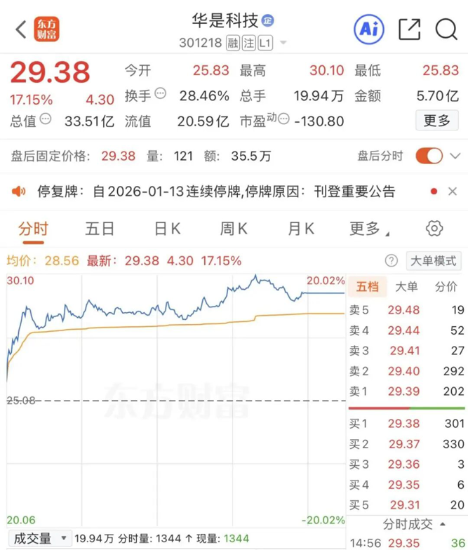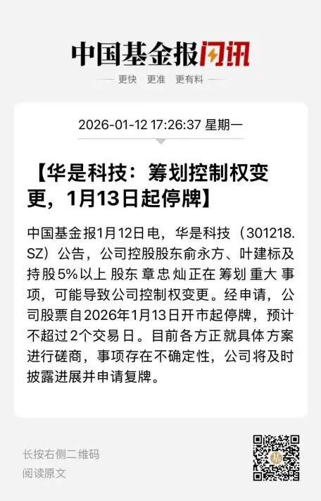 【导读】华是科技筹划易主,1月13日开市起停牌
