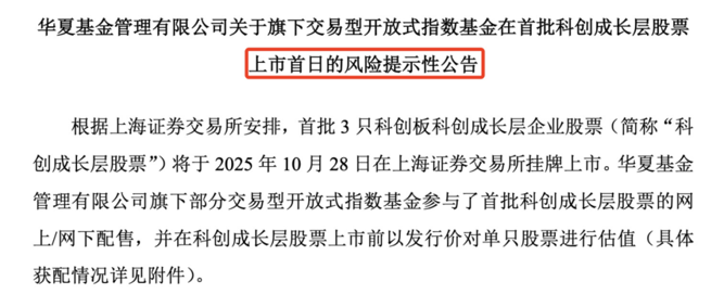 【导读】首批科创成长层股票上市首日,参与配售的ETF发布风险提示