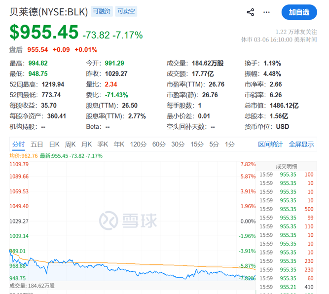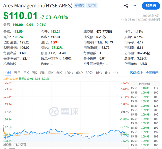 除了贝莱德,KKR、Ares Management等另类资产管理公司的股价也大幅下挫局。