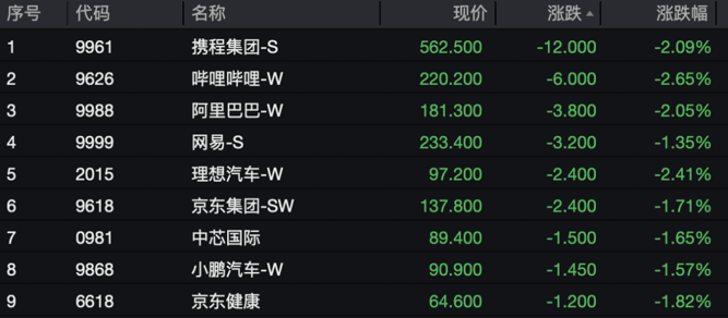 今早,恒生科技指数开盘走弱。截至发稿,携程集团跌超11%,哔哩哔哩跌超5%,阿里巴巴、中芯国际跌超2%,小米集团、京东集团等均跌超1%。