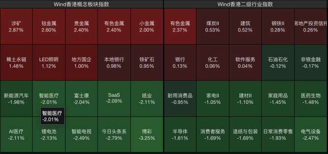 板块上来看,有色金属板块领涨,钴金属、涉矿、贵金属等概念个股涨幅居前;电气设备、日常消费零售、半导体等板块震荡调整。