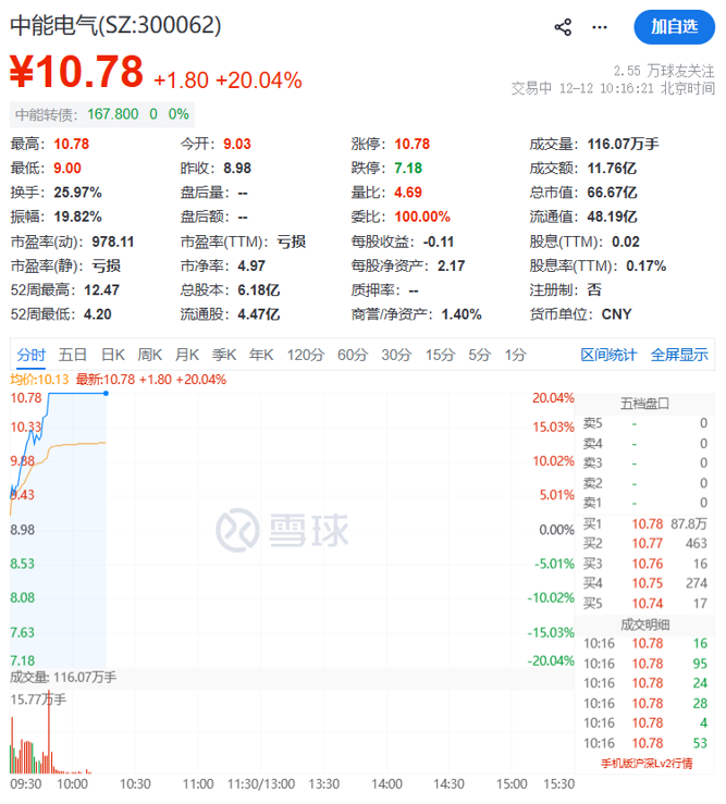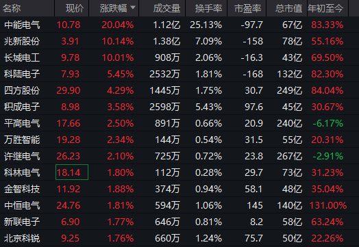 虚拟电厂板块震荡拉升,中能电气20%涨停,兆新股份、长城电工纷纷涨停。