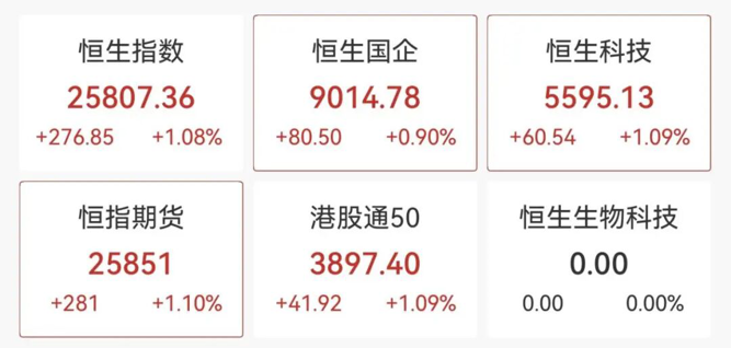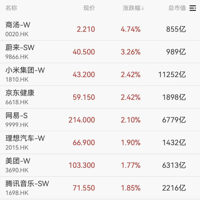港股方面,恒生科技指数涨超1%,商汤、蔚来、小米集团等涨幅居前。