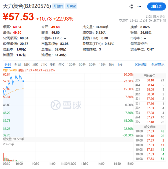 此外,天力复合昨日30%涨停,今日再度大涨超20%。