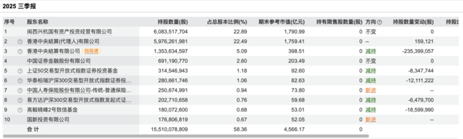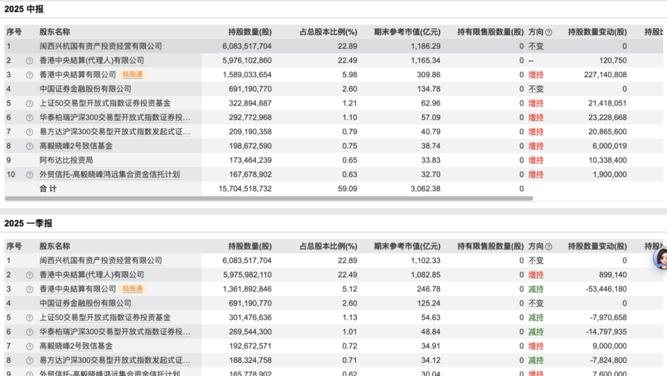 2025年一季度,上述基金增持紫金矿业约760万股;二季度再度增持190万股,以约16568万股位列第十大股东。