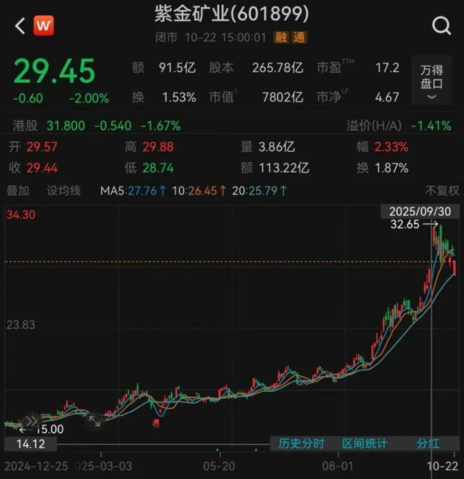 黄金股随国际金价急涨而受益,紫金矿业年内涨幅接近100%。进入四季度,紫金矿业股价震荡下跌。