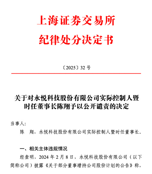 2月6日,ST永悦发布公告称,该公司实控人暨时任董事长陈翔因未完成增持计划,被上交所公开谴责。