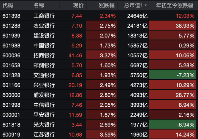 银行板块涨幅达2.47%,央企银行指数走强,相关个股全线飘红。