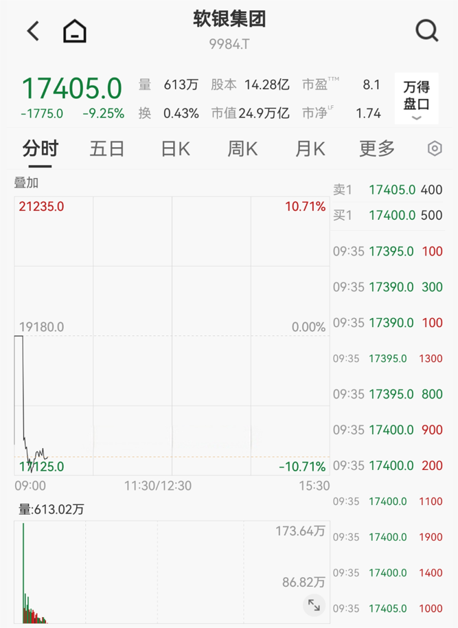 软银集团盘初跌超10%,领跌日经225指数成份股,创下自11月5日以来最大单日跌幅。