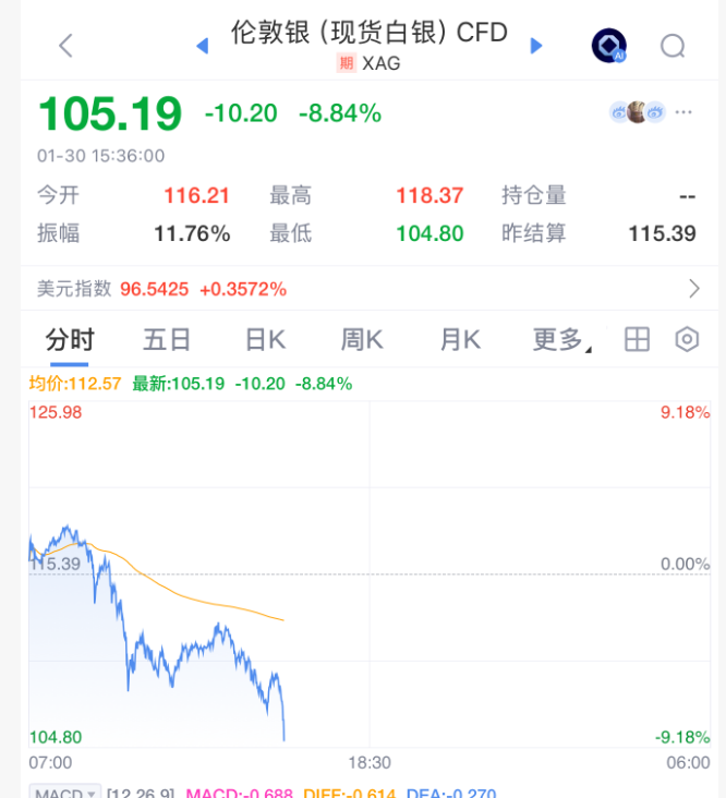 黄金的相对强弱指数(RSI)一度飙升至90以上,白银RSI约为84。通常RSI高于70意味着金属被大量买入,可能需要“歇一歇”,出现停顿或回撤。