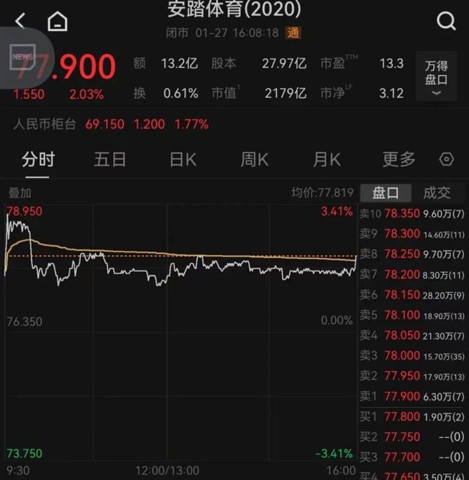 安踏体育收涨2.03%,盘中一度涨超3%。