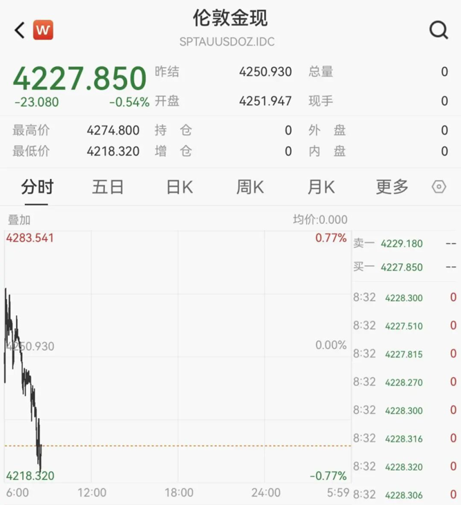 关税缓和信号持续释放,亚市早盘黄金短线走低。现货黄金失守4230美元/盎司,日内跌0.54%。