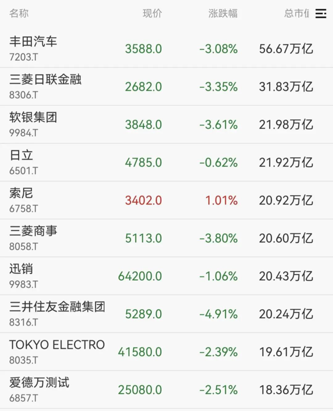 权重股方面,丰田汽车、三菱日联金融、软银集团均跌超3%。日本炼油业指数下跌5%,为东京证券交易所各行业细分指数中表现最差的指数。