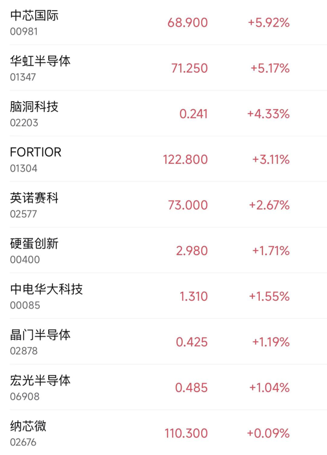 12月22日,港股半导体股上涨,中芯国际盘子一度涨超8%,收盘涨超5%;华虹半导体涨超5%,英诺赛科涨超2.67%,中兴通讯涨超1%。