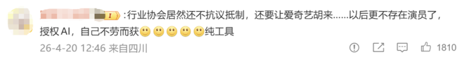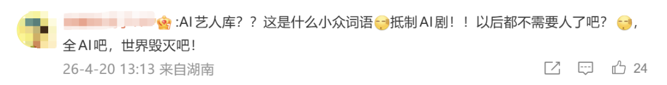 不过,仍有大量网友表达了对“AI艺人”的抵制之情:“授权AI的演员永远避雷”“以后不存在演员了,纯工具”“假的永远都是假的”“不想看机器人演戏”。