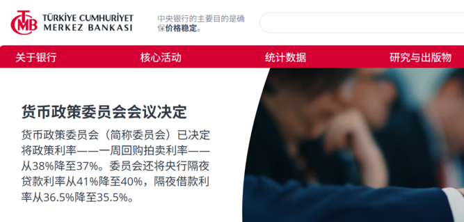 【导读】土耳其央行将一周回购利率下调至37%,降息100个基点