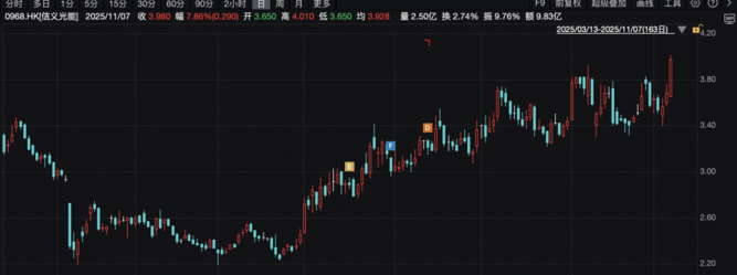 信义光能大涨7.86%