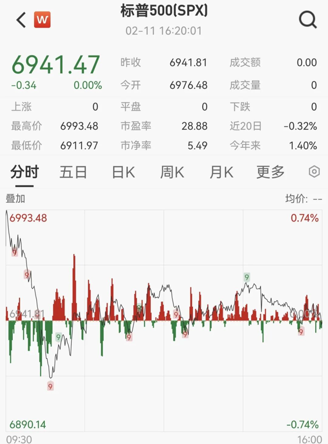 美国主要股指小幅收跌,道指跌0.13%,报50121.4点;标普500指数持平,报6941.47点;纳指跌0.16%,报23066.47点。