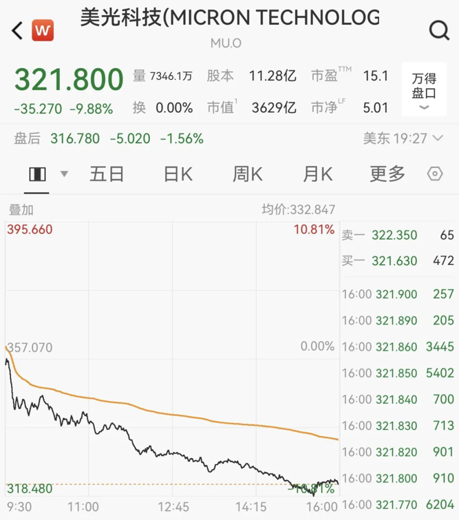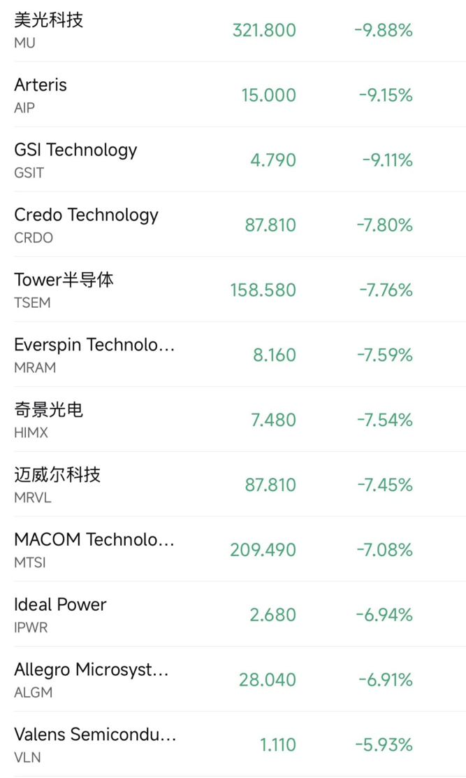 半导体板块集体大跌 巨头美光科技暴跌近10%