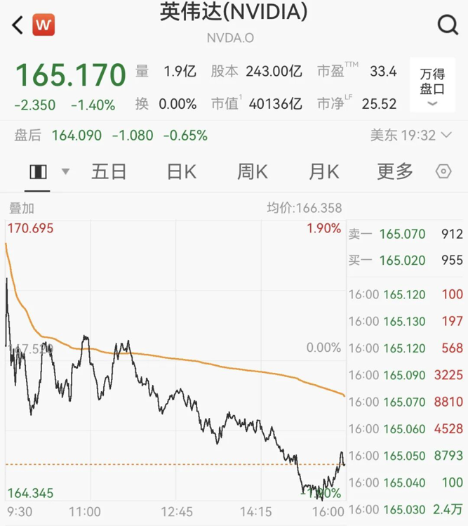 此外,龙头英伟达收跌1.4%,较2025年10月29日收盘价207.02美元已下跌超20%。