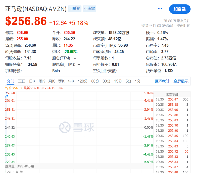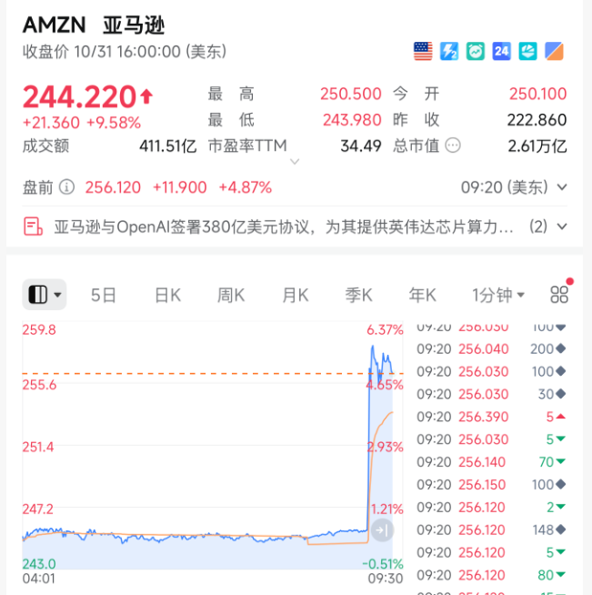 消息出来之后,亚马逊股价盘前直线暴涨5%,正式开盘后维持涨势,纳斯达克指数涨近1%!