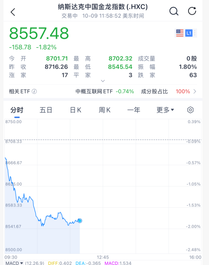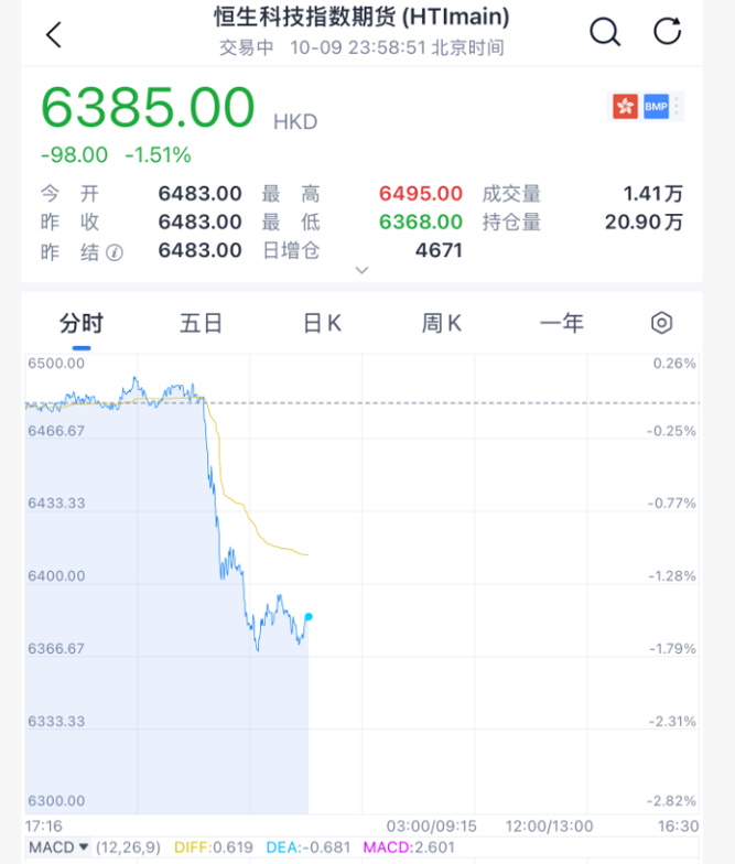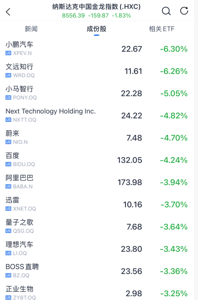 小鹏汽车跌超6%,阿里巴巴、蔚来、百度跌约4%。