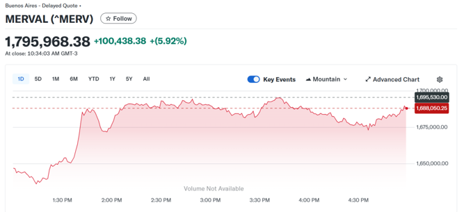 消息公布后,阿根廷股市盘中一度暴涨7%。