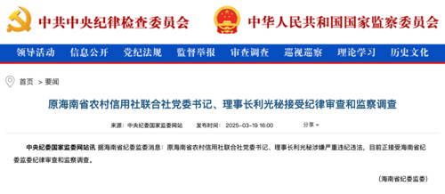 【导读】原海南省农村信用社联合社党委书记、理事长利光秘被查