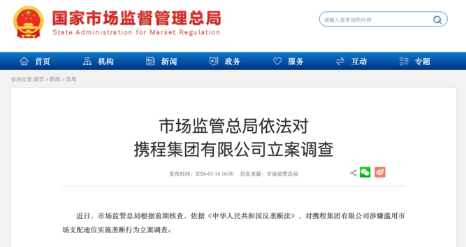 【导读】市场监管总局依法对携程集团有限公司立案调查