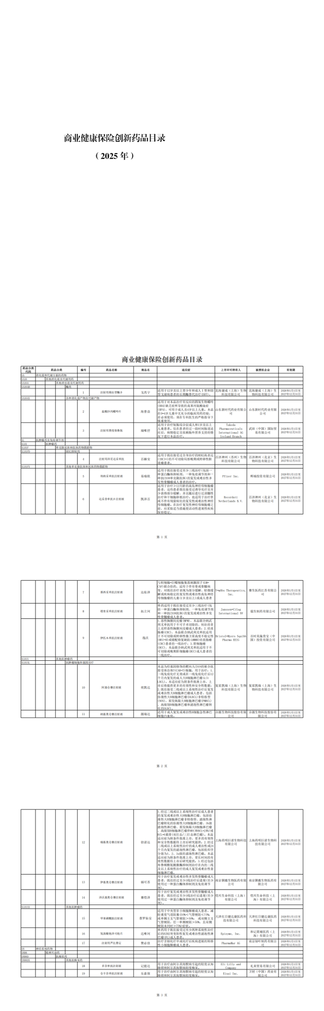 以下为首版商保创新药品目录: