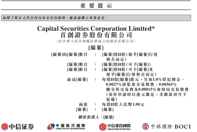招股书显示,首创证券的联席保荐人为中信证券、中国银河国际、中信建投国际、中银国际四家。