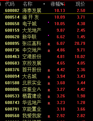 地产股再度拉升,渝开发、电子城、海泰发展涨停。