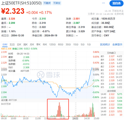 其次,午后开盘之后,华夏上证50ETF(000016)午后成交显著放大。