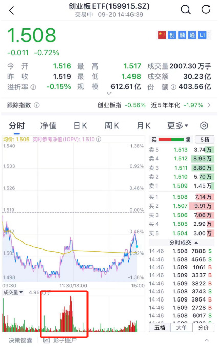 从盘面上看,今天国家队资金似乎兵分三路,首先,在临近午盘前易方达创业板ETF(159915)成交显著放大。