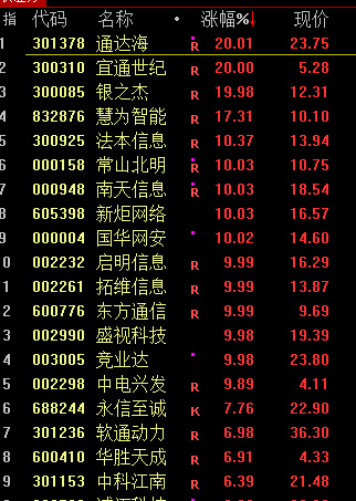 信创概念股全线爆发,通达海、宜通世纪、银之杰等多股涨停。