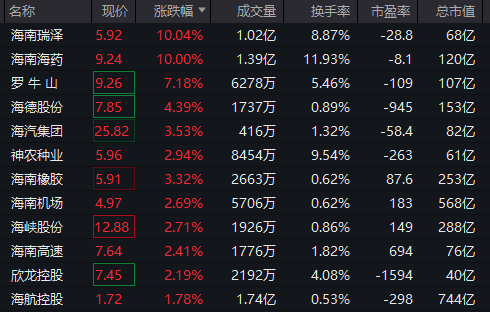 海南板块早盘走高,海南瑞泽、海南海药双双实现2连板,康芝药业、罗牛山、新大洲A、海南矿业等跟涨。