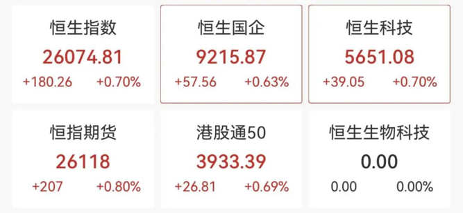 港股方面,三大指数走高,美团涨超6%,比亚迪股份、小鹏汽车、京东集团等跟涨。