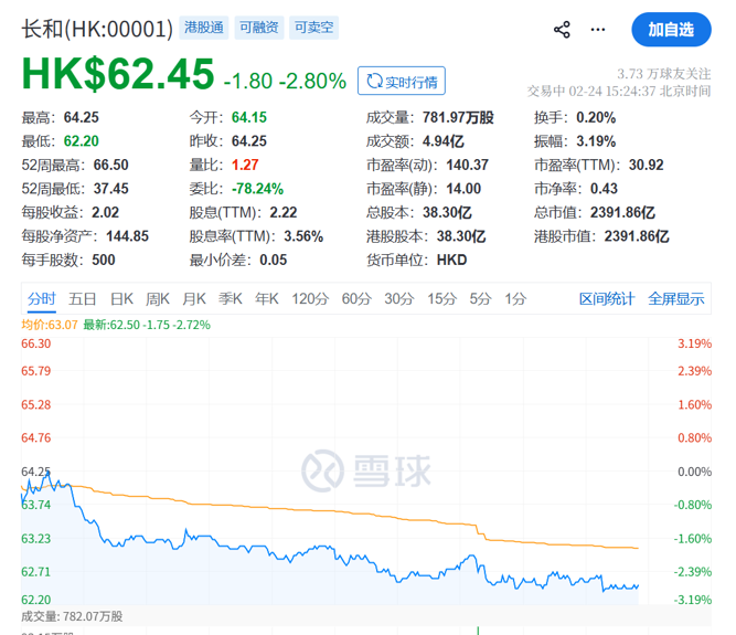 受事件影响,长江和记股价下跌近3%。