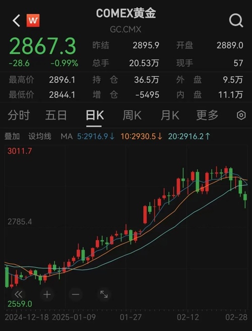 美国三大股指全线收涨。中概股普遍回调。美国1月个人支出创近4年最大跌幅。美联储官员放鹰。国际贵金属期货普遍收跌,高盛预计金价今年将持续上涨。特朗普和泽连斯基当着媒体大吵!乌克兰与美国未签署矿产协议。美东时间2月28日,美国三大股指全线收涨,道指涨1.39%,报43840.91点;标普500指数涨1.59%,报5954.5点;纳指涨1.63%,报18847.28点。英伟达涨3.87%,3M公司涨3.15%,高盛集团涨2.82%,领涨道指。本周,道指涨0.95%,标普500指数跌0.98%,纳指跌3.47%。2月份,道指跌1.58%,标普500指数跌1.42%,纳指跌3.97%。大型科技股全线上涨,万得美国科技七巨头指数涨2.03%。特斯拉涨3.94%,英伟达涨3.87%,苹果涨超1%,亚马逊涨1.54%,领涨七巨头。 中概股普遍回调,纳斯达克中国金龙指数跌1.82%,万得中概科技龙头指数跌3.6%。小米集团跌6.96%,比亚迪股份跌6.57%,拼多多跌4.20%,领跌万得中概科技龙头指数成份股。宏观方面,美国1月个人支出环比降0.2%,为2021年2月以来最大降幅,预期升0.1%,前值从升0.70%修正为升0.8%。美国1月核心PCE物价指数同比升2.6%,符合预期,前值从升2.8%修正为升2.9%;环比升0.30%,符合预期,前值为升0.20%。美国1月商品贸易账初值逆差为1532.6亿美元,显著高于预期的1166亿美元,2024年12月终值逆差为1220.1亿美元。美国2月芝加哥PMI为45.5,高于预期的40.6,前值为39.5。美联储官员哈玛克明确表示,支持维持当前的政策利率不变,在当前展望中不考虑加息。他指出通胀预期仍保持稳定,且未来将继续缩减资产负债表以应对政府财务障碍。他强调资产负债表操作将作为管理流动性需求的主要工具。美东时间2月28日,国际贵金属期货普遍收跌,COMEX黄金期货跌0.99%,报2867.3美元/盎司,全周跌2.91%,2月份涨1.14%;COMEX白银期货跌1.26%,报31.705美元/盎司,全周跌3.96%,2月份跌1.74%。